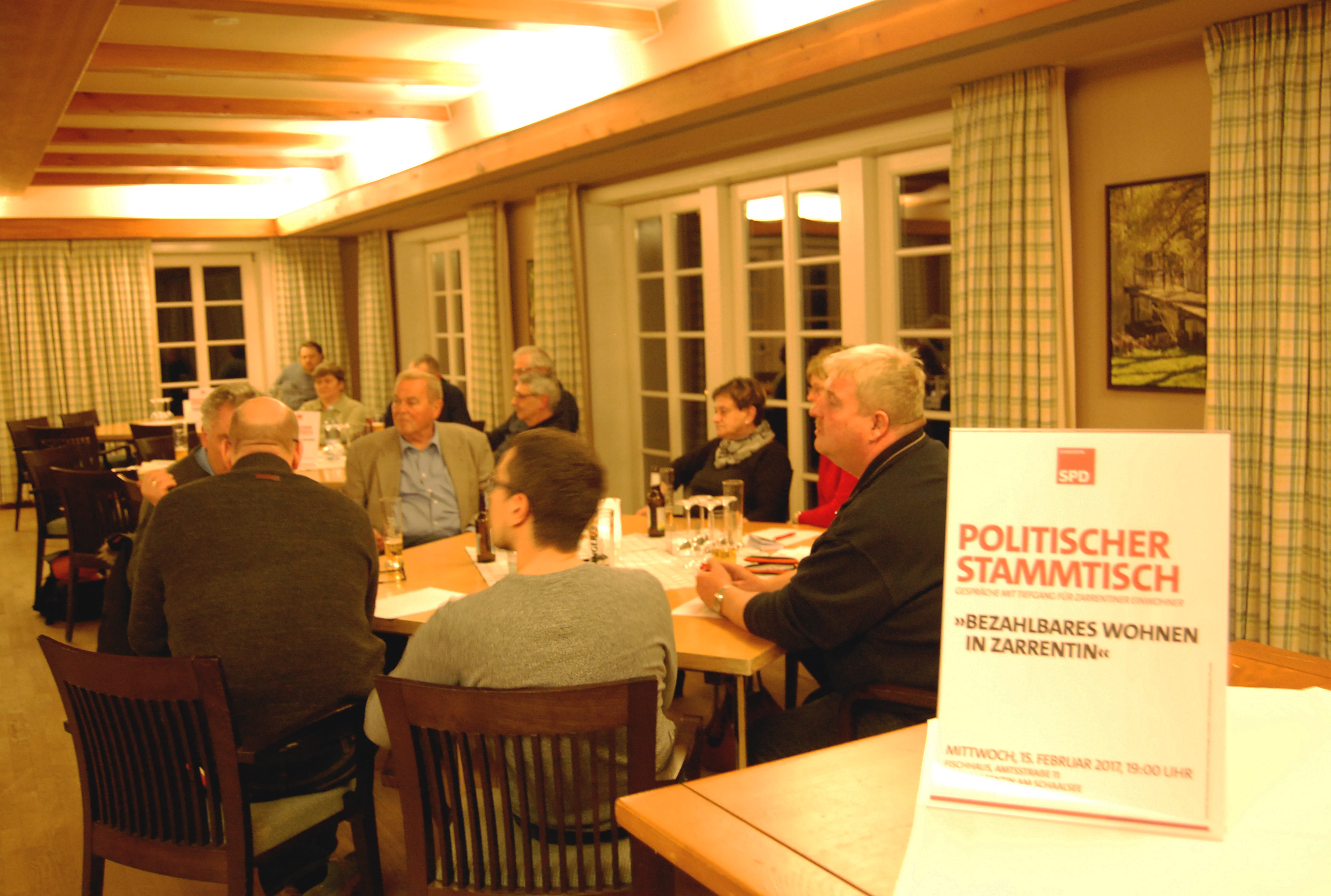 Das erste der künftig regelmäßig stattfindenden Treffen liegt bereits hinter den Aktiven und die Bilanz ist – wie sollte es anders sein – positiv: „Wir sind grundsätzlich zufrieden, vor allem weil die SPD in Zarrentin jahrelang im Dornröschenschlaf gelegen hat“, erklärt Enrico Gerling, Schatzmeister des Ortsvereins. Neben den eigenen Mitgliedern hatten sich sieben Einwohner an den Stammtisch gesellt und dafür gesorgt, dass eine zeitweise lebhafte Diskussion zum Thema „Bezahlbares Wohnen in Zarrentin“ in Gang kam. 20 Menschen an einem Tisch, in dieser Größenordnung hatten die SPD-Mitglieder vor Ort wohl nicht mal zur Weihnachtsfeier zusammen gesessen.